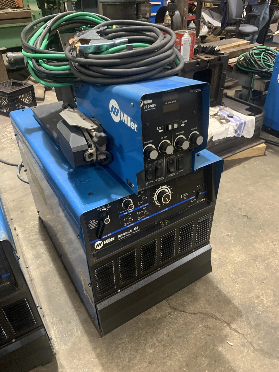 Miller Deltaweld 452 Welding Machine w/ 70 series Dual feeder; new 400 amp guns; new gas hoses, 25' long work cable w/ ground clamp; new gas regulator